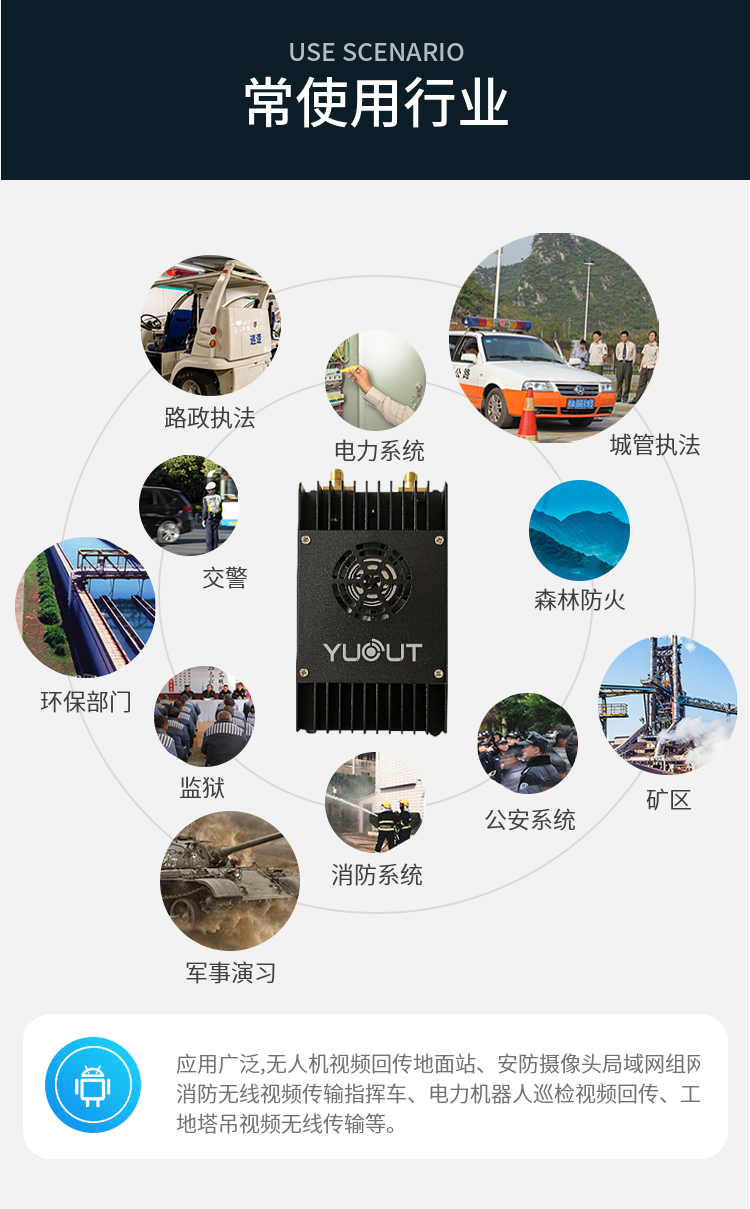 基于 OFDM 技術,圖數一體無人機圖傳設備。