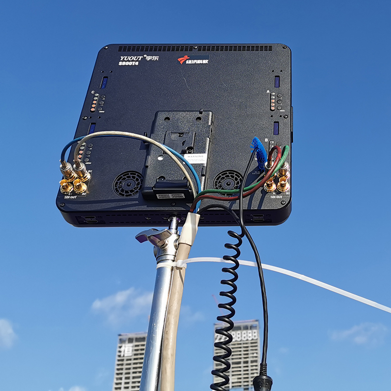 8.發(fā)射機(jī)2個(gè)SDI接口,1個(gè)HDMI接口,其中一個(gè)SDI本地環(huán)出,可以接一個(gè)SDI監(jiān)視器。