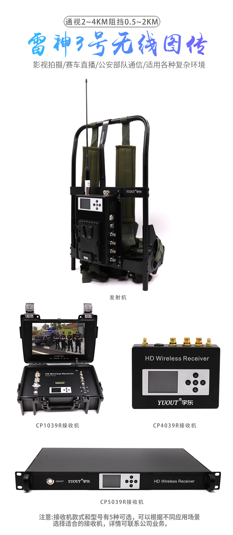 雷神3號(hào)無線圖傳采用宇東自主研發(fā)的非視距無線技術(shù),300MHz~4400MHz 頻率,可訂制無線頻段,支持3G/HD-SDI最高1080p60穩(wěn)定傳輸視距1-2KM,最遠(yuǎn)可達(dá)4000米(需要改裝天線),非視距距離200~2000米(具體視實(shí)際應(yīng)用環(huán)境而定)。(環(huán)境復(fù)雜、可穿墻、人多、車多、樹多及障礙物多的地方),主應(yīng)用于廣播電視臺(tái)、影視拍攝、教育直播、大型演唱會(huì)、電影電視制作、體育轉(zhuǎn)播、社會(huì)新聞、空中實(shí)況、演播室、海事、 交警、人防應(yīng)急、城管執(zhí)法、三防應(yīng)急等方面。系統(tǒng)為純硬件連接,即插即用。